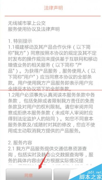 5、出现服务使用协议及法律声明,点击同意。