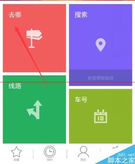 6、在主页面可以看见相关功能:去哪、搜索、线路、车号等,我们进入去哪。