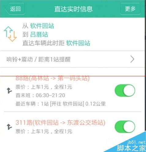 8、系统会出现相关公交车信息,有88路和311路,点击88路也可以看见具体到站信息