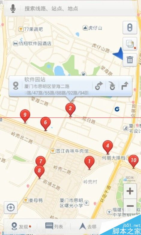 12、地图上会标记你要找的站点及相近站点,公交车信息也能看见。也可以直接使用下面的去哪、方案功能。