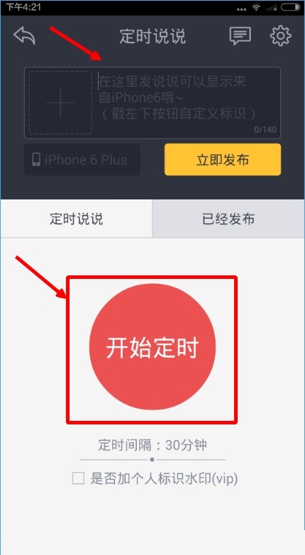 2、说说内容库可定时发表。时间用户可以自己设定。