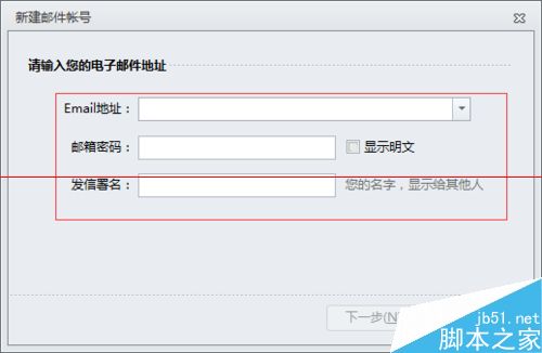 5、设置完成后,打开加密邮,输入自己的邮箱帐号以及刚才的独立密码,点下一步,如图所示。