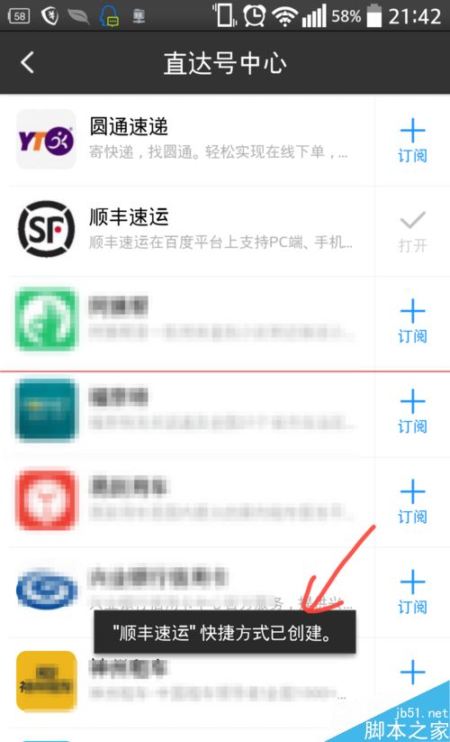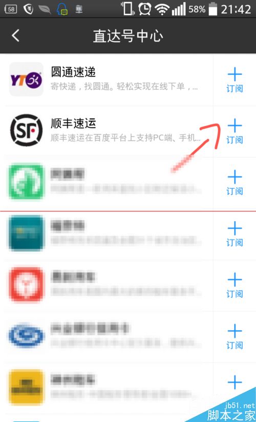 6、可以看到很多生活方面的直达号,点击一个进行订阅。