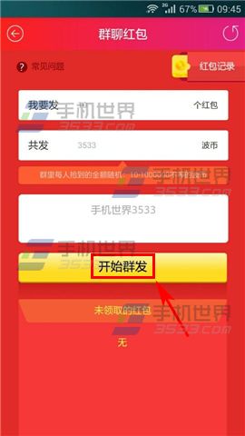 2)点击左下角【红包标志】,填写红包个数和金额,然后点击【开始发送】就可以了。(如下图)