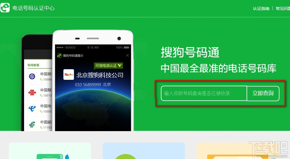 搜狗号码通号码认证网址: