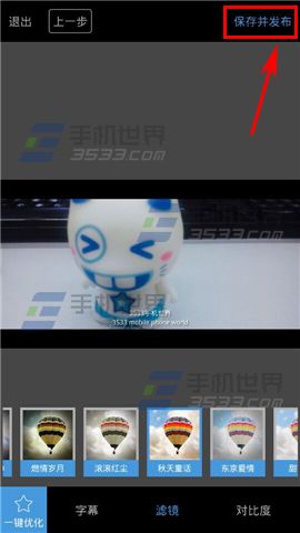 4)大片的感觉已经出来了有木有,然后点击【保存并发布】,输入文字描述以及标签后点击【发布】即可。(如下图)】