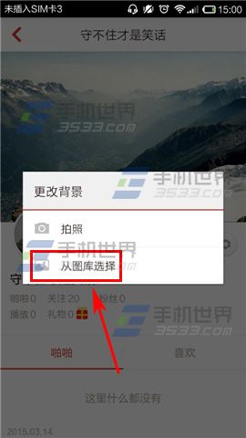 3)弹出提示框后点击【从图库中选择】,在相册中选取一张图片后裁剪好即可,快去看看效果怎么样吧。(如下图)