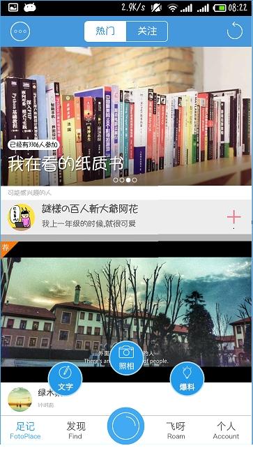 作为一个拥有取景、滤镜等基本功能的拍照App,“足记”最特别之处在于,你可以在所拍摄的照片上再嵌套一张照片,让虚拟世界中的场景与现实场景融合在一起2015-03-12- 足记为何会一夜爆红?足记就在上周从一个不知名的软件摇身一变变成人人都在用的app,它为何会如此的一夜爆红,而且它又是如何刷爆朋友圈的呢?下面一起跟小编来看看吧2015-03-16