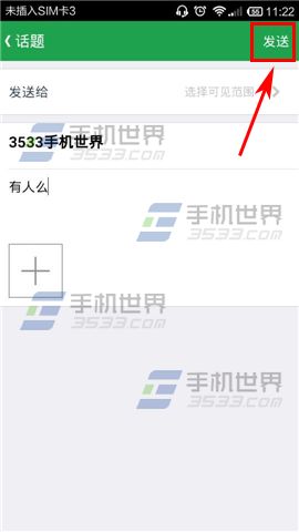 2)弹出选项,点击【新建话题】,选择好可见范围,标题以及内容后,点击【发送】即可。(如下图)