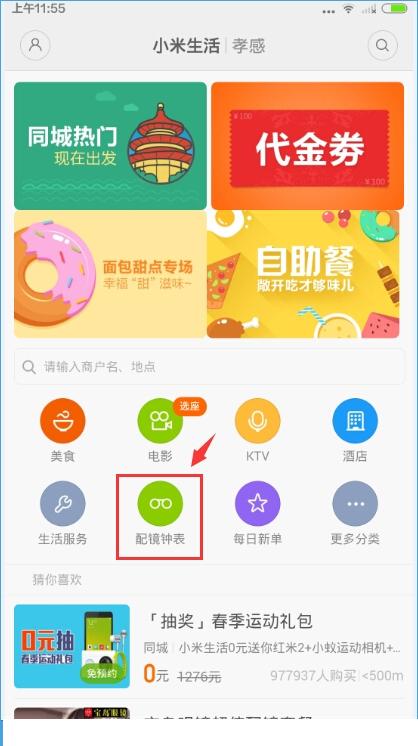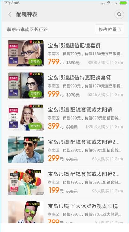 6、点击配镜钟表,即可了解附近所有的配镜店折扣,为你折扣到底哦。
