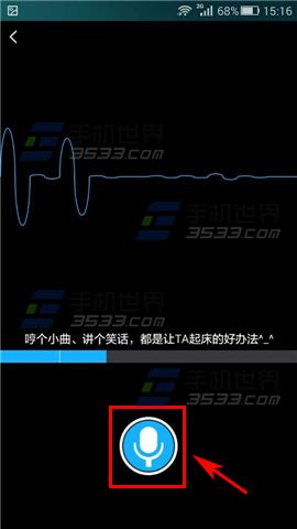 1)打开醒醒,在【我的】栏点击头像旁边的【发铃声】,选择【音频】然后点击【麦克风标志】进行录制;(如下图)