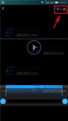 2)再次点击【麦克风标志】停止录制,然后可以试听刚才录制的音频,没问题的话点击右上角【下一步】;(如下图)