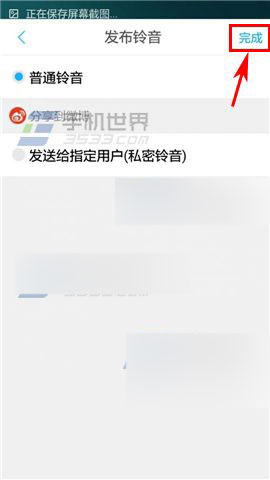 3)可以为音频配上一段话语和设置封面图,然后点击【下一步】,选择铃声以【普通铃声】还是【发送给指定用户】发布,最后点击【完成】就可以了。(如下图)