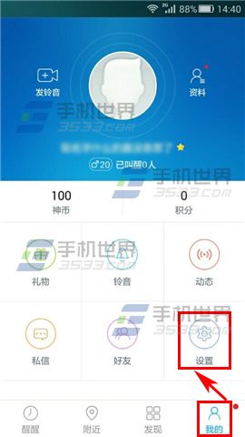 1)打开醒醒,在【我的】栏选择【设置】,点击【定制铃音服务】;(如下图)