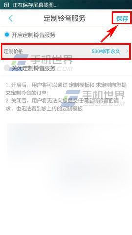 2)点击【开启定制铃音服务】,然后通过【定制价格】设定价格后点击【保存】就可以了。(如下图)