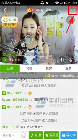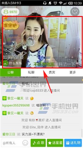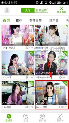 1)打开酷狗繁星,进入首页后选择一个【直播间】点击进入,接着轻触一下【视频】。(如下图)