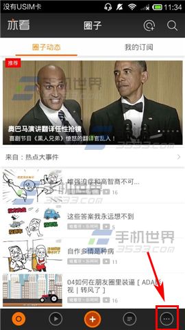 1)打开【亦看】,进入到圈子动态页面后,点击右下角的【...】按钮。(如下图)