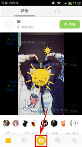 1)打开【遮遮】,进入首页后点击下方的【照相机】按钮。(如下图)