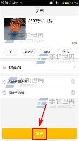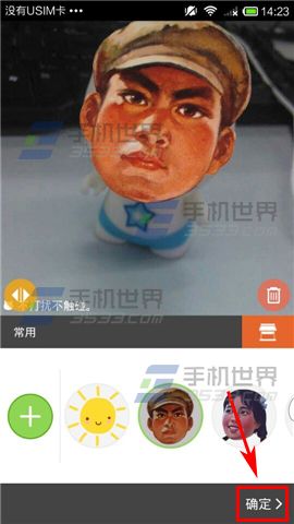 3)选择一款个性的贴纸遮器,遮脸遮哪里都可以,将贴纸放大移动至自己满意的位置后,点击【确定】,给该照片描述文字后点击【发布】即可。(如下图)