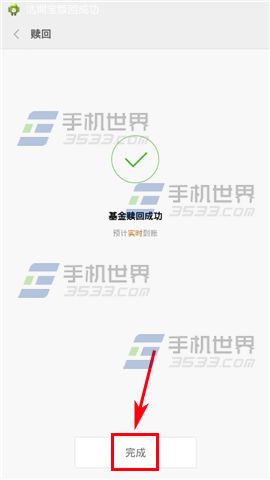 2)接着输入支付密码,点击【确定】,即可赎回成功,点击【完成】跳转回首页。(如下图)