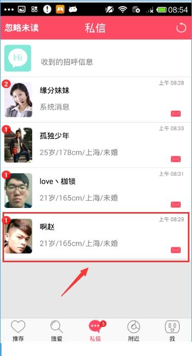 1、打开软件后,进入私信页面,选择你想回复的那个朋友。