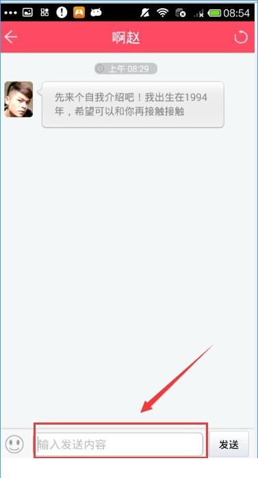 2、进入到聊天主页面后,即可以看到别人给你发的消息,在如图所示的框中输入想说的内容后点发送即可。
