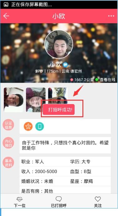 2、进入小欧详情页面后,点击打招呼,显示打招呼成功即可。