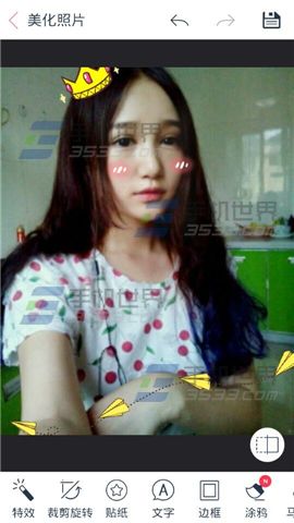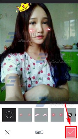 3)点击自己喜欢的贴纸,放大缩小移动到满意的位置后,点击【√】,即可保存哒。(如下图)