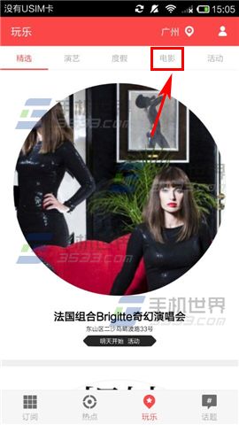 1)打开ZAKER,进入首页后点击【玩乐】按钮,接着点击【电影】。(如下图)