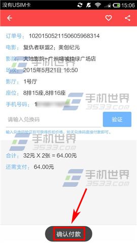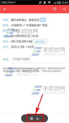 3)选择想要去的影院,然后挑选场次,点击想要购买的【场次】,进入到选票页面,勾选好座位,点击【确认】即可。(如下图)