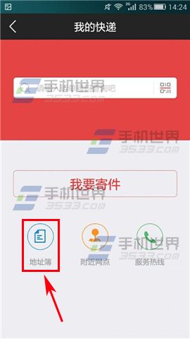 1)打开顺手付,进入首页后点击【快递】按钮,跳转到我的快递页面,点击【地址蒲】。(如下图)