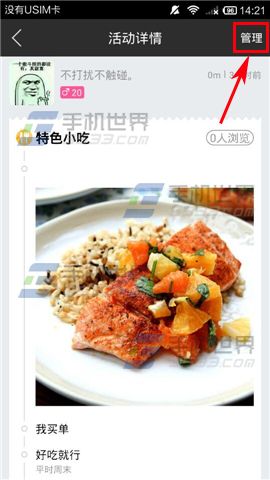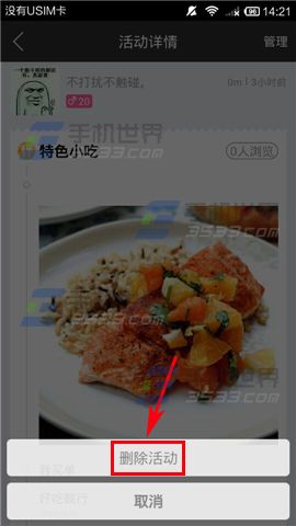 3)接着点击右上角【管理】,弹出选项,点击【删除活动】。(如下图)