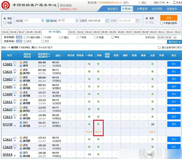 5月27日上午,武汉工作的姜先生爆料称,自己购买的5月30日从汉口到黄冈西的D5238车次显示二等座“有”,点击后弹出“26.5”。然而,预订车票时,显示的支付票价却为27.5元。