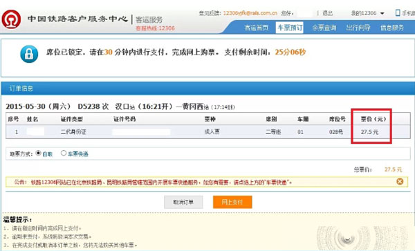 12306网站现乌龙票价 付款价格高于查询价格