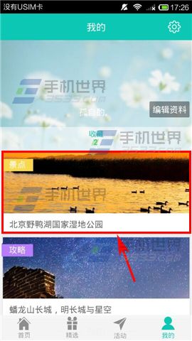 1)打开108天,进入首页点击右下角的【我的】按钮,进入到收藏页面,点击一个【景点】资讯。(如下图)