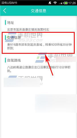 2)进入到详情页面后点击【乘车方式】一项,即可看到公交乘坐信息。(如下图)
