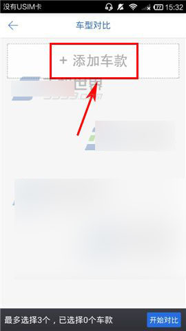 2)接着点击【车型对比】,再点击【添加车款】按钮。(如下图)