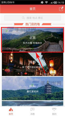 1)打开【艺龙驴友】,进入首页后点击想要去的【目的地】,进入到该目的地发帖版块。(如下图)