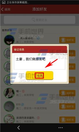 3)找到自己要添加好友点击该好友右边的【加好友】,写上你要说的话或者告诉朋友你是谁点【发送】。(如下图)