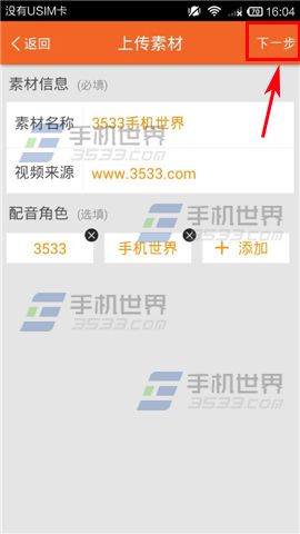 3)从相册中选择一个素材视频,等待上传完成,填写好素材信息后进行【下一步】,背景音频、字幕文件和素材封面可以选填,当然填了更专业哦,编辑到最后呢点击【完成】就可以啦。(如下图)