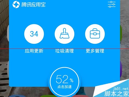 3、除了系统加速快捷功能,还支持自带常用的应用更新,垃圾清理,这些功能虽然应用宝也有,不过它只是把这些功能做成快捷化打开而已