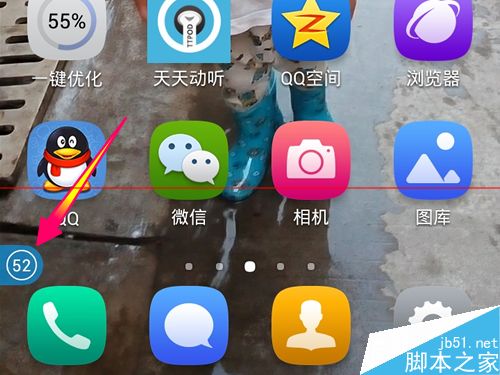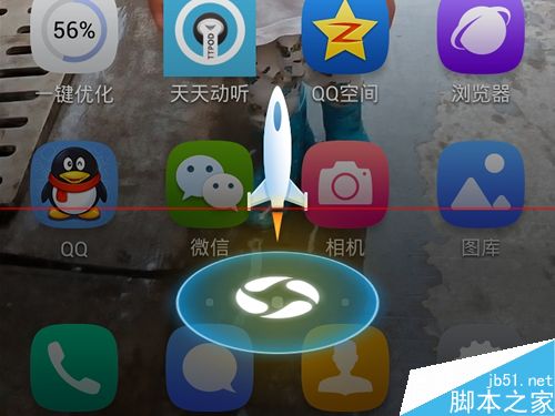 2、当把悬浮窗拉动的时候,屏幕下面出现一个图案,拉动到这里执行加速
