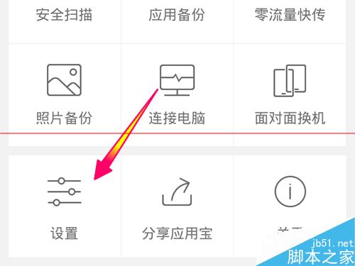 2、在应用宝管理功能的最下面,找到并打开[设置]选项