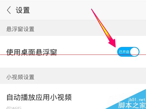 3、在[设置]->[悬浮窗设置],点击设置开关把悬浮窗设置为不显示就可以关闭了