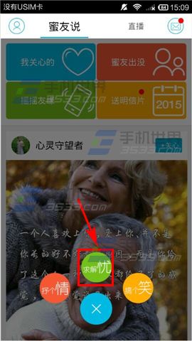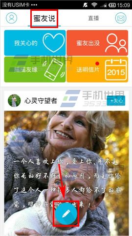 1)打开蜜友圈,在【蜜友说】页面点击下方的悬浮【一支笔】按钮,弹出分类,点击对应的【分类】。(如下图)