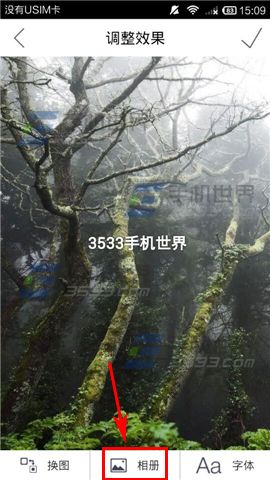 2)输入文字内容后轻触一下下方的【空白背景】处,即会为你自动配图,然后点击【相册】按钮(别问我为啥输入文字后不直接点相册,你试试~)。(如下图)