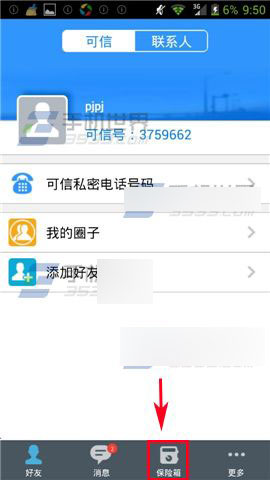 1)打开【可信隐私卫士】,进入应用点击下方【保险箱】。(如下图)