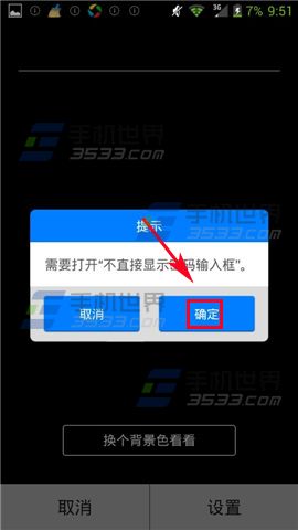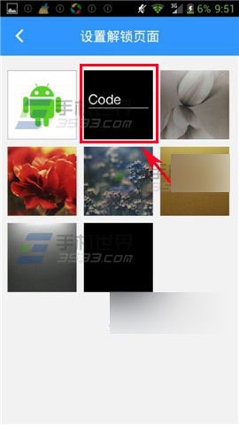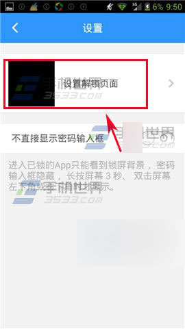 3)进入设置页后点击【设置解锁页面】。可根据个人需要打开不直接显示密码输入框的开关。选择你需要的【解锁页面图片】。(如下图)