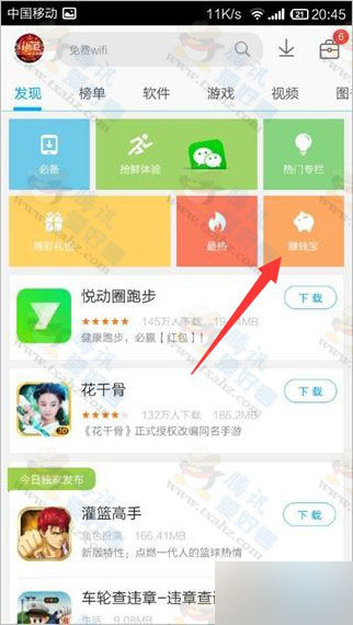 1、打开手机中的应用宝,点击“赚钱宝”进入活动。