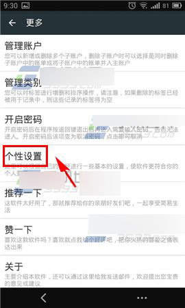 2)在更多页面点击【个性设置】,最后在个性设置页中打开【金额货币化显示】的开关即可。(如下图)